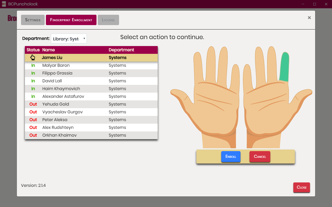 - On the Left side, select the employee whose fingerprints you would like to enroll.